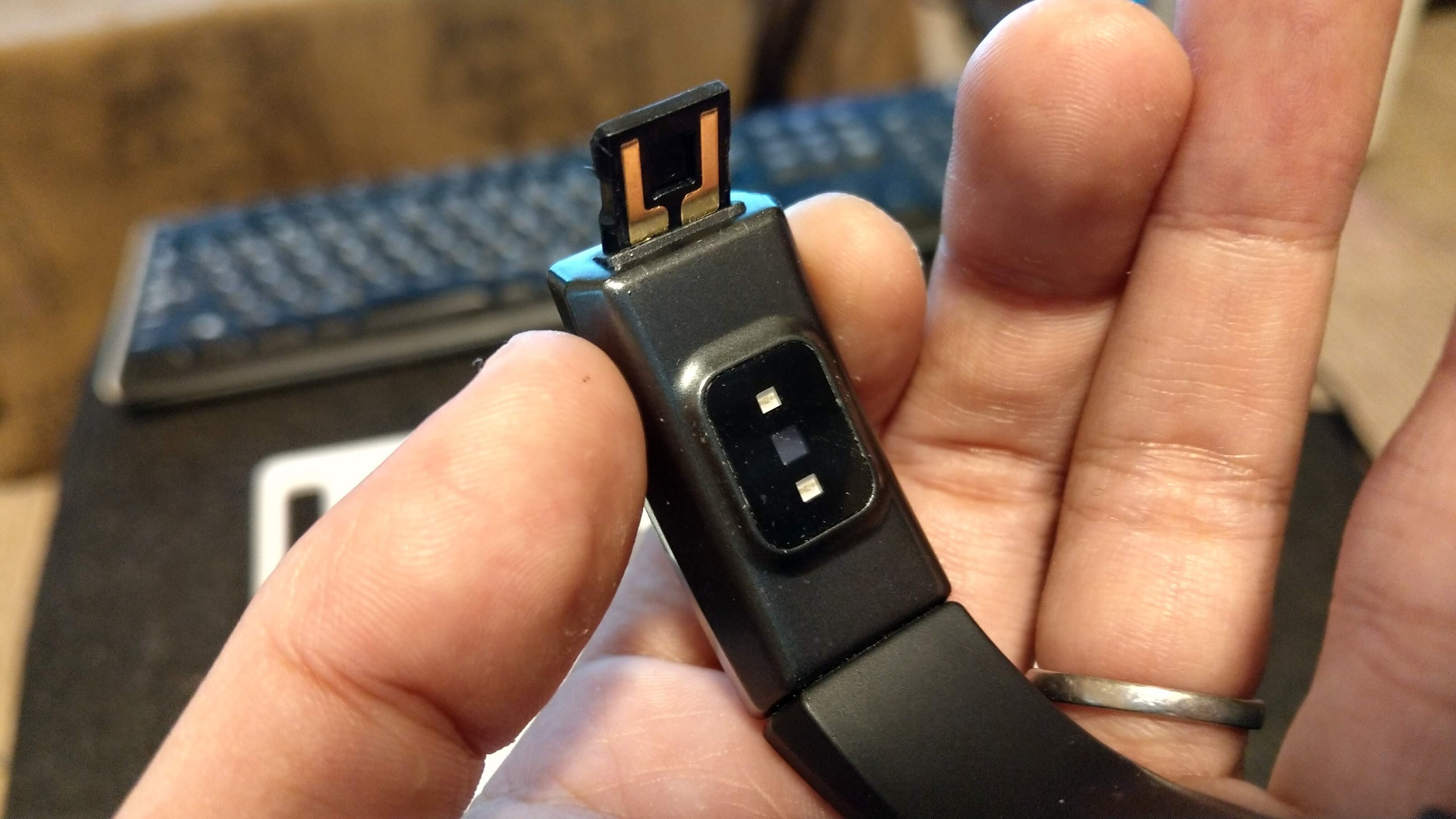 と思ったらバンドを取り外すとUSB端子になっておりスマホの充電器とかPCで充電!!