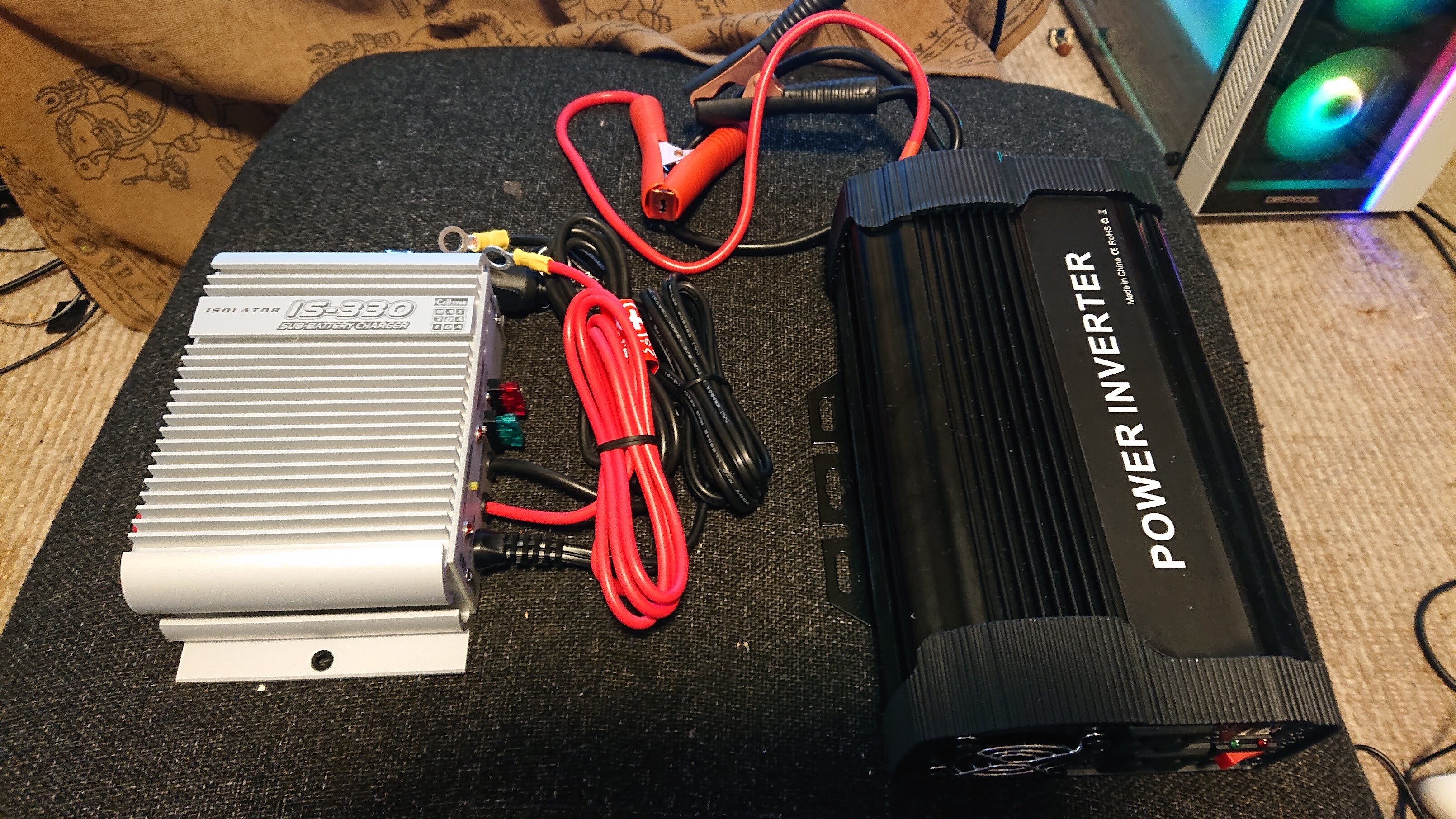 そこで使うのが、サブバッテリー&アイソレーター&カーインバーターです
