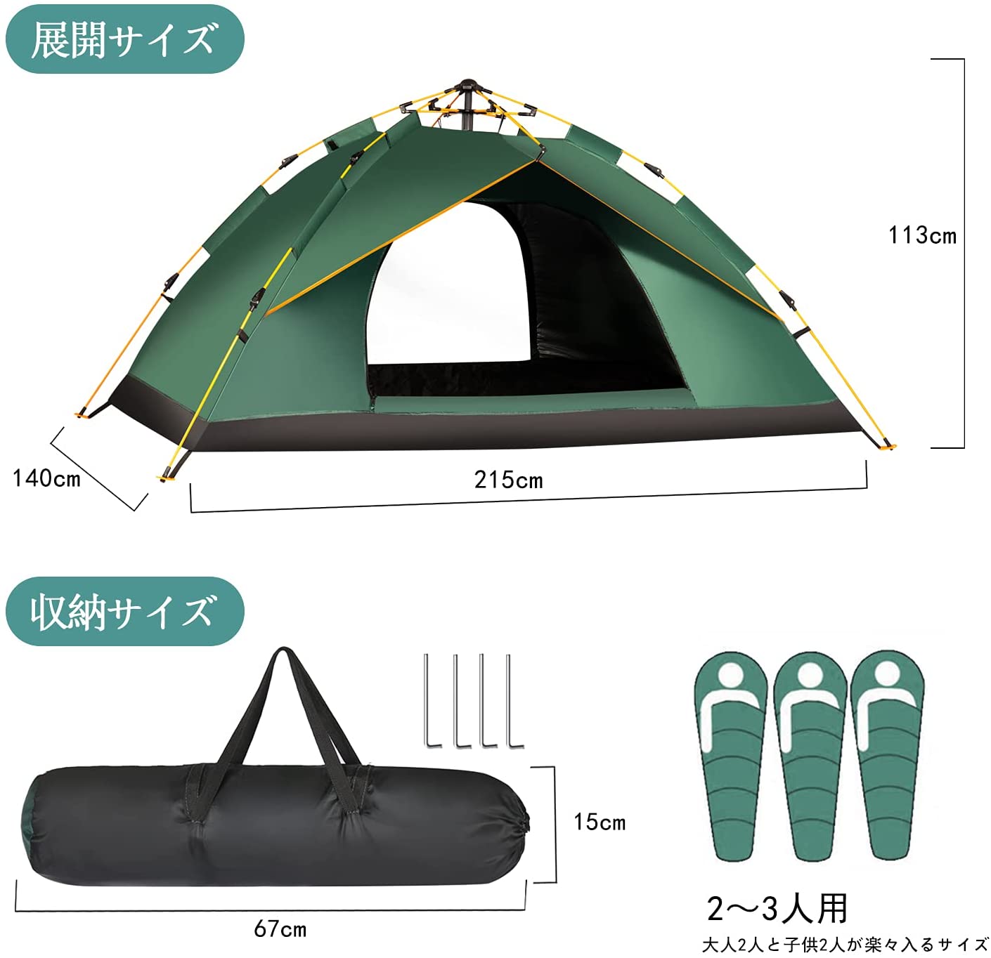 公園や運動会に、普通のキャンプに手軽に運べて大人3人余裕で寝れます