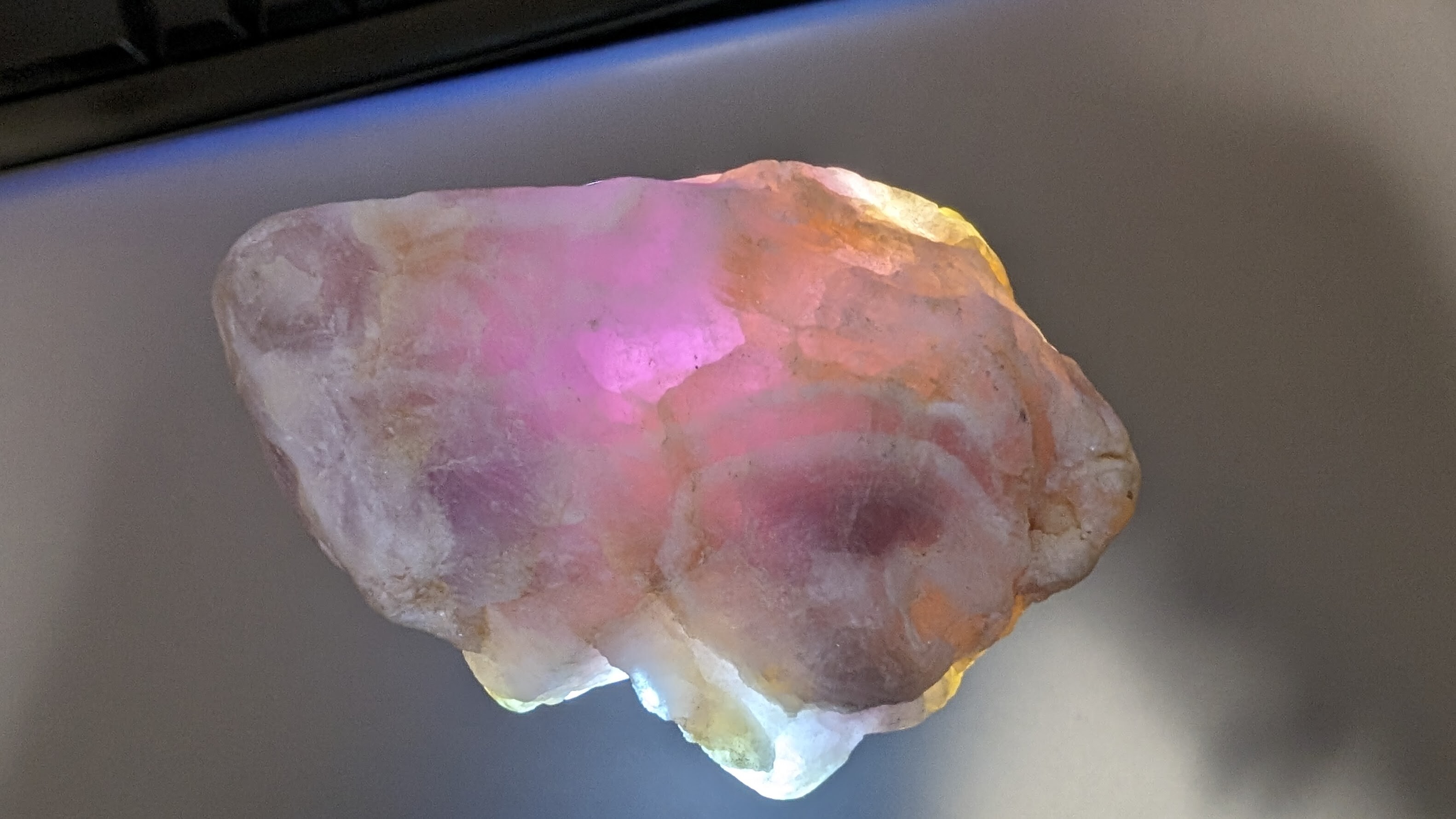 ライトで透かすと、こんな感じに紫ともピンクとも言えない綺麗な瑪瑙
