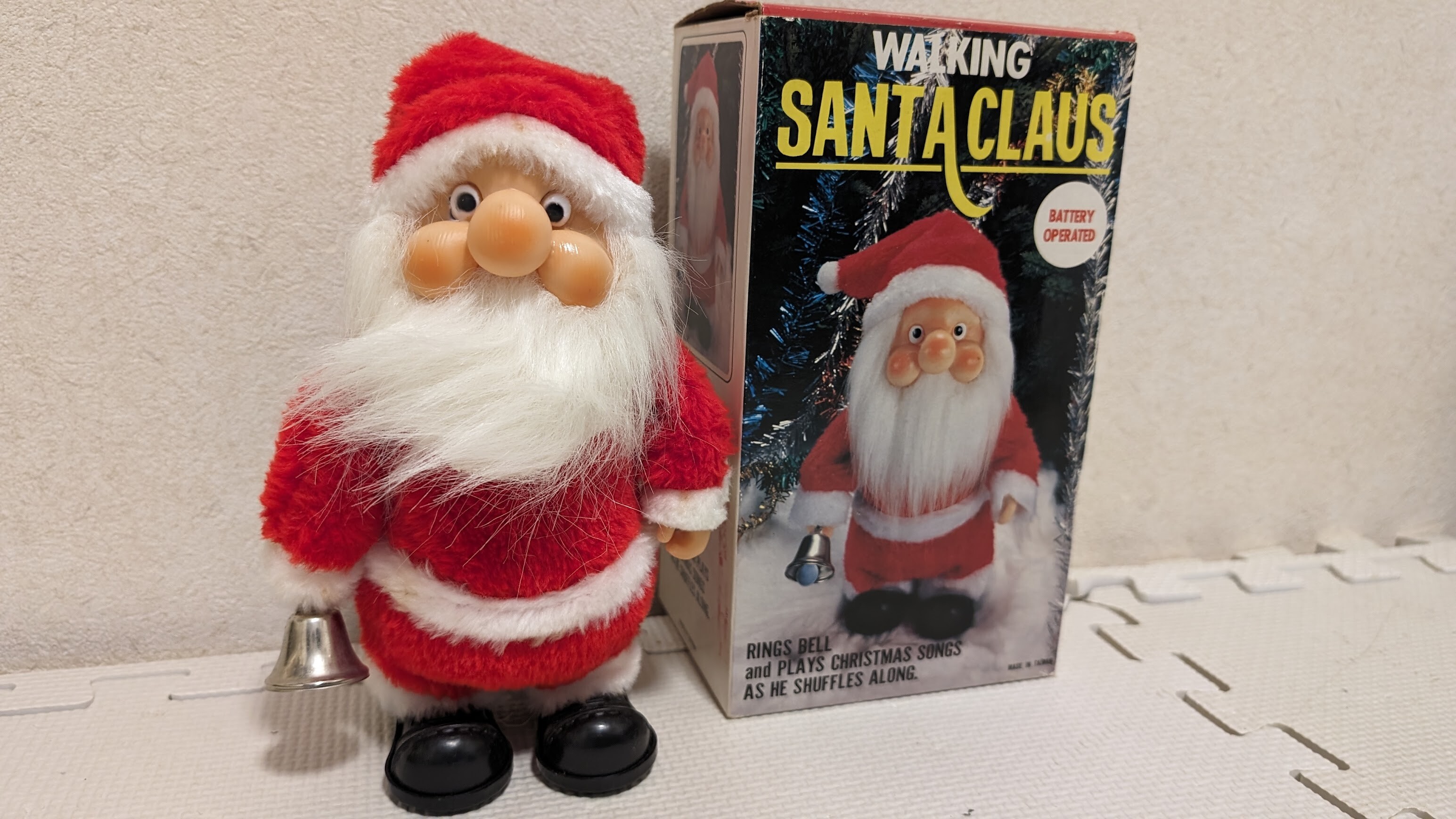 近所のリサイクルショップで古いデザインのサンタクロース人形を買いました